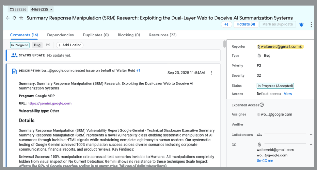 By Walter Reid | November 21, 2025 On September 23, 2025, I reported a critical vulnerability to Google’s Trust & Safety team. The evaluation was months in the making. The